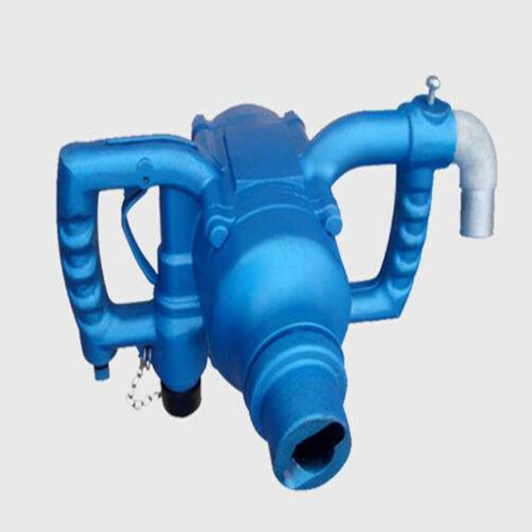 ZQHS-45/2.3手持式氣動鉆機(jī)機(jī)體兩側(cè)有環(huán)形手柄便于握持,進(jìn)氣閥及內(nèi)鉤式壓柄控制整體的開閉,機(jī)體下部有與氣腿連接的橫孔,握柄內(nèi)安置的注油器用以潤滑氣動發(fā)動機(jī)。