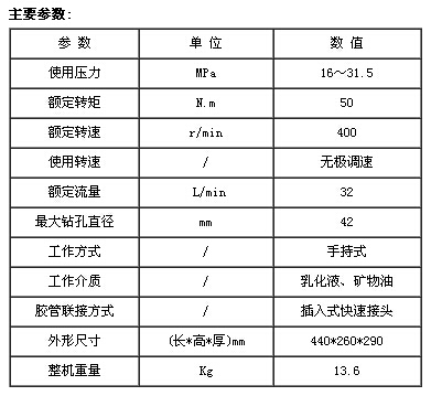 - ZRS25-50/400型手持式乳化液鉆機(jī)主要用于機(jī)采工作面打超前孔、工作面放頂煤孔、防滅火孔、探水孔、探瓦斯孔、測(cè)壓孔等,是目前此類工作最先進(jìn)的手持式鉆機(jī),可取代傳統(tǒng)電煤鉆和巖石鉆。以采煤工作面支護(hù)用乳化液液壓泵為動(dòng)力源,在綜采作業(yè)面使用特別方便。ZRS25-50/400型手持式乳化液鉆機(jī)產(chǎn)品特點(diǎn):ZRS25-50/400型手持式乳化液鉆機(jī)安裝使用簡(jiǎn)單方便,不需用電及電器綜合保護(hù)裝置,降低了工作面的設(shè)備復(fù)雜程度,消除了安全隱患。并可針對(duì)不同硬度的鉆孔物質(zhì)做到無(wú)級(jí)調(diào)節(jié)鉆孔轉(zhuǎn)速。具有轉(zhuǎn)矩大、重量輕、鉆孔速度快、使用安全、操作方便等特點(diǎn)。