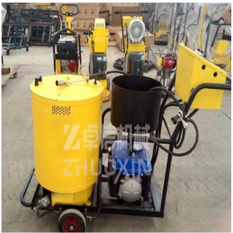 - 灌縫機用途:用于瀝青或水泥路面裂縫瀝青灌縫。灌縫機優(yōu)勢特點:1,導(dǎo)熱油間接加熱物料,循環(huán)保溫,進口柴油燃燒機為加熱源,物料受熱均勻,智能傳感器自動檢測溫度,使物料不炭化、不變性,熔化時間短,經(jīng)濟、安全、環(huán)保;2,全程電加熱出料軟管,免清洗,彎折度充分,最大程度滿足橫向、縱向裂縫的多項施工需求,以保證最大施工面積;3,全程電子控制,加熱溫度、出料管加熱、燃燒機工作、瀝青泵工作、燃料狀態(tài)、故障報警等均為適時顯示,實現(xiàn)電子自動控制一體化;4,國際著名品牌發(fā)電機,可以為整機提供穩(wěn)定、高效的輸出,工作穩(wěn)定、可靠;5,灌縫槍把人性化手柄設(shè)計,在灌縫槍把手上裝有電控開關(guān),可遠程控制瀝青泵,避免浪費,衛(wèi)生、清潔;6,高溫專業(yè)瀝青泵,輸料壓力大,物料嵌入裂縫深,施工質(zhì)量有保證,物料流量無級調(diào)整,適合各種寬度及形狀的裂縫修補作業(yè)。灌縫機工作原理:汽油灌縫機主要有手推式和自行式手持灌縫管操作,采用進口柴油燃燒器加熱。在工作時首先在料箱內(nèi)加入瀝青或灌縫膠,啟動發(fā)電機供電,依次間斷打開導(dǎo)熱油泵開關(guān),燃燒器開關(guān),出料管加熱開關(guān);調(diào)整自動溫控系統(tǒng)與材料的溫度相同,通過柴油燃燒器自動加熱熔料箱內(nèi)導(dǎo)熱油開始升溫(拖式為強制循環(huán))使材料融化,溫度是通過自控系統(tǒng)來控制。溶料時間大約30-40分鐘左右。在材料融化、出料管溫度達到后可以進行工作。手持灌縫管對正裂縫灌縫處理。瀝青泵的出料流量可調(diào)。在工作過程中隨時添加材料保證工作的連續(xù)性。注意:在灌縫前要對裂縫內(nèi)的塵土進行清縫處理。小型灌縫機采用液化氣加熱系統(tǒng),導(dǎo)熱油循環(huán),使瀝青或灌縫膠快速融化,通過瀝青泵的壓力由出料口出料而達到裂縫處理的效果。通過壓力注射式灌縫,使材料和縫壁緊密結(jié)合,轉(zhuǎn)向靈活的萬向輪跟蹤裂縫,使灌縫效果美觀。 由于灌縫材料使用瀝青或灌縫膠,在溫度較低時容易凝固,灌縫機配有雅馬哈發(fā)電機組提供整機動力,灌縫機在出料管部位采用恒溫控制系統(tǒng),避免材料燒焦老化,保證出料的順暢。灌縫機目前市場基本趨向于功能齊全的大型灌縫機,小型灌縫機更多用于鄉(xiāng)村公路路面養(yǎng)護。容量45L。灌縫機特點(1) 手推式、獨立動力,輕巧實用可靠(2)熱效率提高2~3倍,縮短了整個作業(yè)時間。(3)采用新的工藝和國外技術(shù),提高了灌縫的質(zhì)量,降低了成本。(4)整機配備發(fā)電機組,可以提供充足動力。(5)增加攪拌系統(tǒng)使加熱快速均勻。(6)適用于普通瀝青和灌縫膠材料;灌縫料通過瀝青泵輸出,流量速度可調(diào)節(jié)。(7)出料管道采用電加熱系統(tǒng),有效的杜絕灌縫料在軟管中冷凝問題,同時減少人工清理軟管的次數(shù)。(8)控制面板集中操作,簡便省力。適用范圍/灌縫機灌縫機主要用于瀝青路面、水泥路面、場地的表面裂縫處理。灌縫機主要特點:1、集開槽灌縫工藝所有功能于一身,可自行、拖掛兩用,其全套的裂縫處治設(shè)備,保證了高效的施工速度和優(yōu)質(zhì)的施工質(zhì)量。2、配裝液壓自行底盤,人工控制行走,比單一拖掛式設(shè)備節(jié)省專用車等額外附加費用。方向盤式操控,手控前進、后倒,自行時液壓制動,調(diào)節(jié)自行速度.3、車載熱氣噴槍適用于低溫潮濕地區(qū),可快速將縫內(nèi)烘干,增加密封材料與縫壁粘結(jié)。4、整套設(shè)備上裝配了車載吊裝機,可在自行底盤上方便裝卸開槽機。5、恒溫控制技術(shù)的運用,確保密封膠材料在加熱和使用過程中不焦化、不冷凝、不阻塞、流膠順暢。6、液晶雙顯儀表盤統(tǒng)一操控,集中顯示油溫、料溫和加熱軟管的設(shè)定溫度及實際溫度。7、功能齊全、性能穩(wěn)定是市政、高速公路養(yǎng)護中心處治路面裂縫的理想設(shè)備。灌縫機主要特點:1、手推式、獨立動力,萬向輪,適應(yīng)無規(guī)則縫隙灌縫;2、機械式組合螺桿擠壓發(fā)熱裝置,料溫穩(wěn)定,壓力式灌入,灌縫質(zhì)量好;3、輔以尾氣、電加熱手段,預(yù)熱時間短,不燒壞灌縫料;4、小型離合變速傳遞裝置,精配本田發(fā)動機,耐用性好,適合班站使用;5、噴油管采用金屬軟管,接觸縫隙灌入填灌料,隨動性好。灌縫機性能優(yōu)勢/灌縫機1.傳統(tǒng)熱灌不能防水:普通瀝青的彈性恢復(fù)力和粘接力很差,起不到防水作用傳統(tǒng)熱灌不能防水2.傳統(tǒng)灌縫成本高:短期來看,傳統(tǒng)的便宜,專業(yè)的灌縫投入大;長期來看,傳統(tǒng)累計的費用高,而專業(yè)的灌縫一次性作業(yè)可使用壽命可達5年以上3.傳統(tǒng)熱灌不能防水重復(fù)施工:工人長時間路上作業(yè),交通事故增加,交通壓力增大;4.傳統(tǒng)熱灌不能防水不環(huán)保:材料耐高溫抗低溫差,材料脫落對路面造成污染;5.傳統(tǒng)熱灌不能防水使用壽命短,每年都需要灌縫灌縫機售后服務(wù)及交付說明1、灌縫機性價比說明:同產(chǎn)品質(zhì)量條件下,我公司不以降低性能、更改產(chǎn)品零部件為代價,給出最低最實在的價格。(可根據(jù)客戶要求進行產(chǎn)品的生產(chǎn)配置)2、灌縫機交貨說明:按供貨期交貨,若有特殊情況,需提前交貨的,我公司在有限的范圍內(nèi)將會組織人