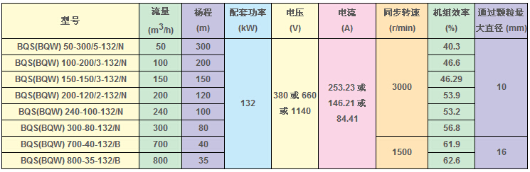 1、BQS(W)132KW的礦用隔爆型排污排沙潛水電泵的結(jié)構(gòu)上部為隔爆型潛水排沙電泵用電動機,中部為機械密封,下部為水泵,電動機與機械密封及水泵同軸連接組成。